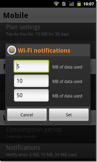 The notification settings for mobile data, roaming data and Wi-Fi data can be configured individually so that the users get notified when they reach a specified data limit for each of the three categories.