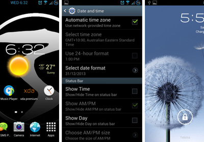 Samsung’s flagship Galaxy S series of smartphones have always created a vibrant developer community around them, thanks to their hacker-friendly, relatively open nature, and the general popularity among the masses. With so many custom ROMs, and small “mods” available, the Galaxy S III is no different than its predecessors. The latest mod we’ve come across for the device is called Statusbar Clock for Galaxy S III running stock Android 4.1.2, which lets you customize the status bar time in a number of different ways common to custom ROMs like CyanogenMod, AOKP, Paranoid Android, etc. It adds “Status Bar” options under Settings > Date and time that let you choose to show AM/PM along with the current time, display day of the week, change font size and position of the text on the status bar. There’s also an option to switch to an AOSP-style lockscreen!