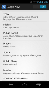 It must be mentioned here that, as of now, automatic Google Now Smart Cards are available for just a handful of categories, including weather, traffic, upcoming appointments, flights, nearby places, sports, public transit and travel. You have the option to de/activate and/or personalize settings for whatever categories you want. That being said, a number of other aforementioned topics/categories also sport Smart Cards, but they are launched upon user request only. Even for queries that can’t return a Smart Card, you’re still presented with matching results via the recently-enhanced Google mobile search.