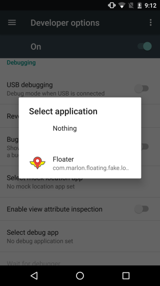 Now install Floater. Next, open the Settings app and go to Developer Options. Under Debugging tap the ‘Select mock location app’ option and select ‘Floater’.