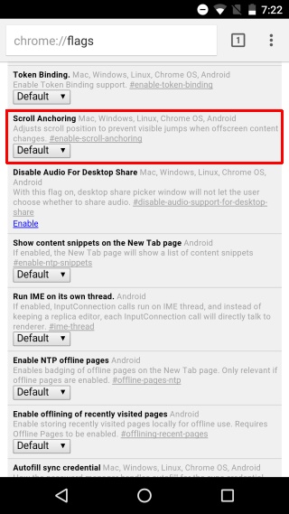 Open Chrome and type Chrome://flags in the URL bar. Look for the flag named ‘Scroll Anchoring’ and enable it. Don’t leave it set to ‘Default’. Tap the drop-down under the flag and select enable. Relaunch Chrome.