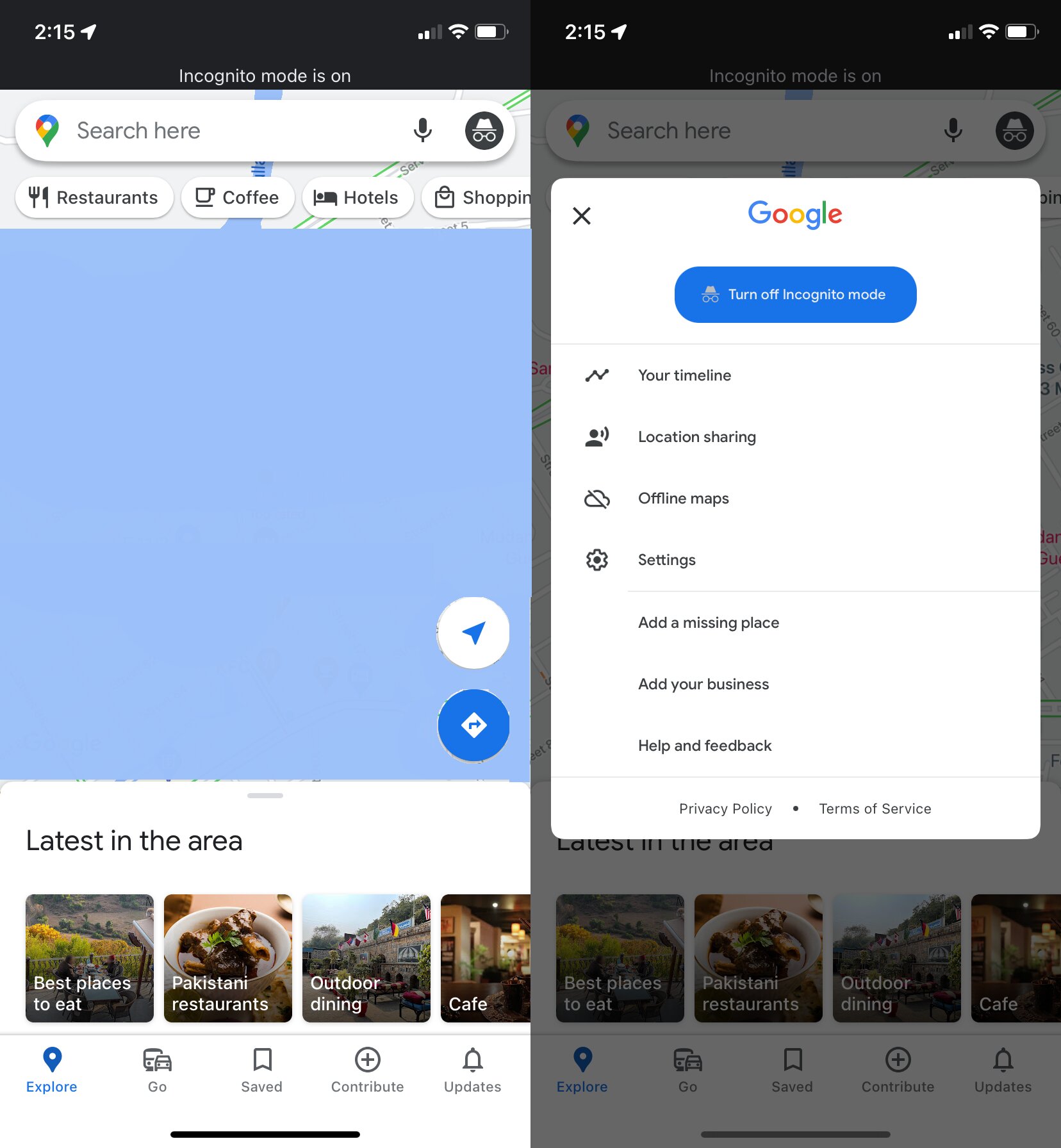- While you’re in incognito mode, your location cannot be shared with trusted contacts via Google Map i.e., location sharing will be paused while the mode is selected.