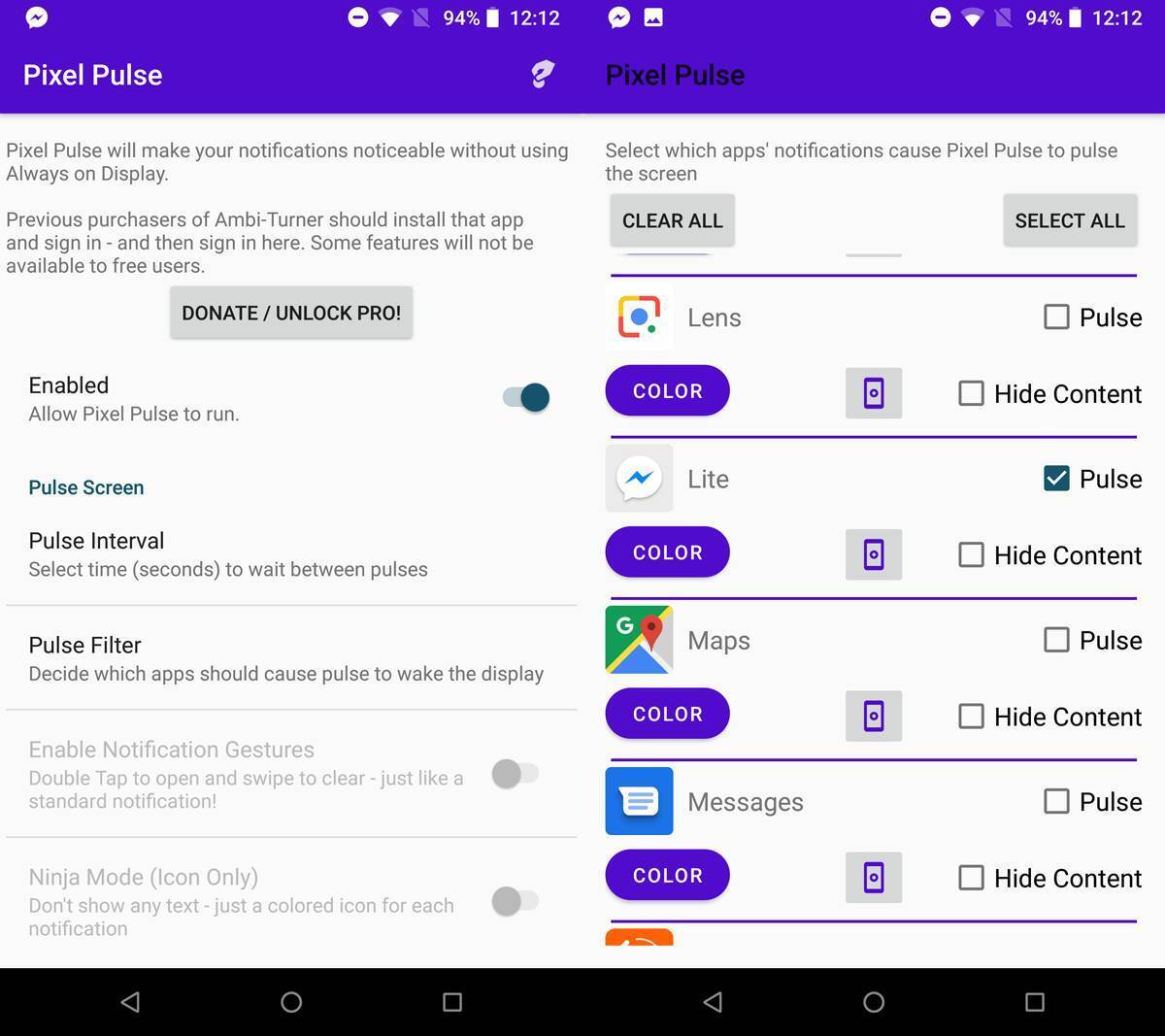 Download Pixel Pulse and run the app. It needs access to your notifications, and you need to select which apps can show you these pulse notifications. We strongly recommend that you keep this list tame and that you manage how often your display lights up to remind you about the notification.