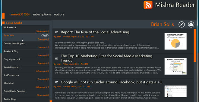 Mishra Reader – Metro UI Based Google Reader With Smooth Animations