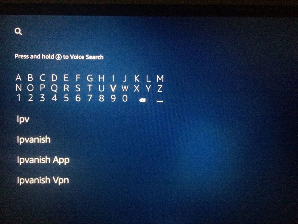 - Debajo del teclado, debería aparecer la opción IPVanish. Si no es así, simplemente ingrese más letras del nombre IPVanish en el teclado hasta que lo haga. Una vez que lo veas, desplázate hacia abajo y haz clic donde dice IPVanish.