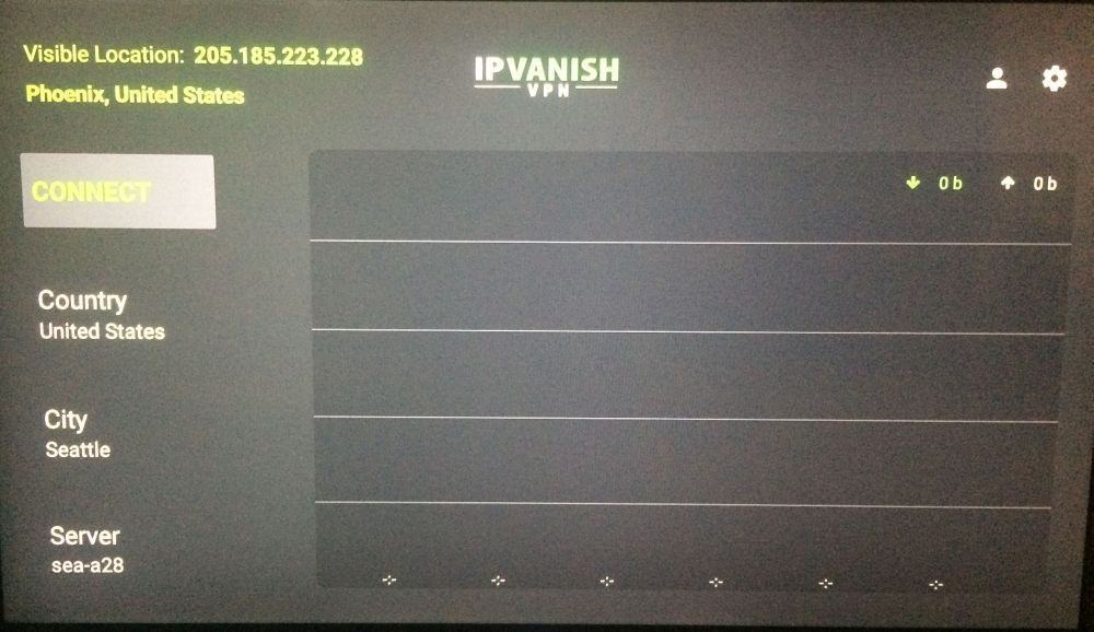 - Conectar: este es el botón en el que hace clic para conectarse a un servidor IPVanish. Cuando estás conectado, esto cambia a un Disconectar.