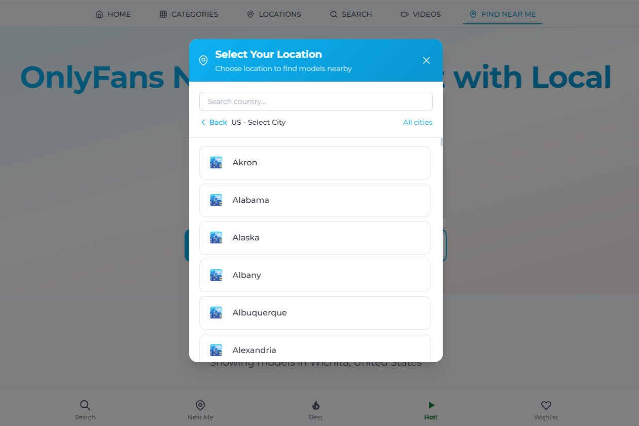 - OnlyFans Near Me is the local creator search tool from OnlyGuider. It can determine your location or you can enter it manually to find OnlyFans models near you. Additional filters can narrow down the results by gender, desires, age range, race, orientation, and physical features.