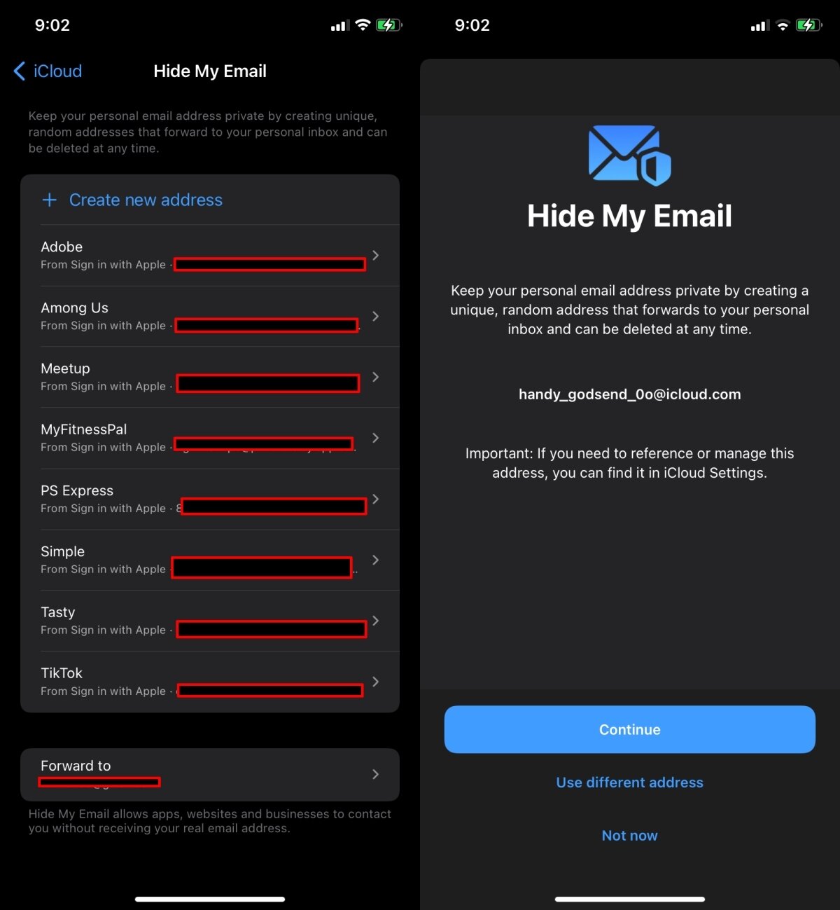 Once you’ve checked those two boxes, you can start using the Hide my email feature.