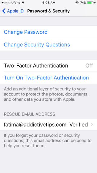 Apple introduced two factor authentication back in 2013. It was a new layer of security that users could enable but Apple never pushed the feature. Come iOS 10.3, iOS will persistently ask you to set up two factor authentication. In fact, iOS 10.3 comes with a revamped Settings app that lets you set up two factor authentication from your iPhone (or iPad). You are no longer restricted to setting it up from your desktop. Here’s how you can set up two factor authentication from your iPhone.