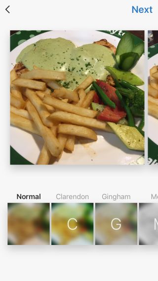 After you select the photos you want to include in your post, you can select a filter to apply. The filter you select for one photo is applied to all photos in the post. If you want to apply a different filter to each photo in your post, tap it on the filter selection screen.