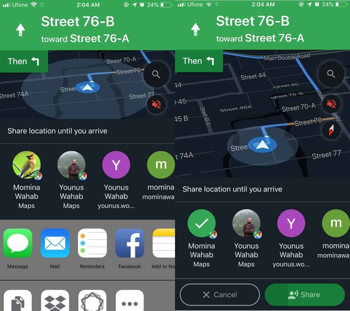 How to share trip progress in Google Maps
