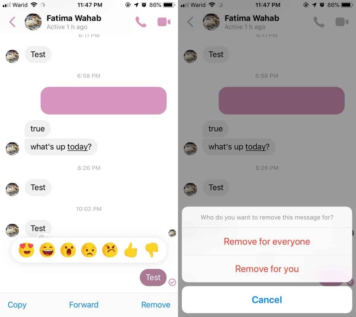 WhatsApp has a similar unsend feature which allows you to unsend messages that are no older than 7 minutes. There’s no word on how old is too old for a message to be unsent on Facebook Messenger but you can take a hint from WhatsApp and expect similar time limits.