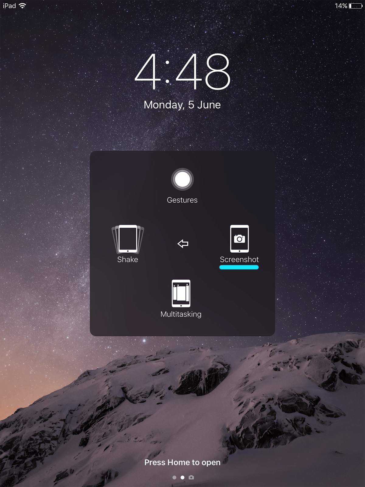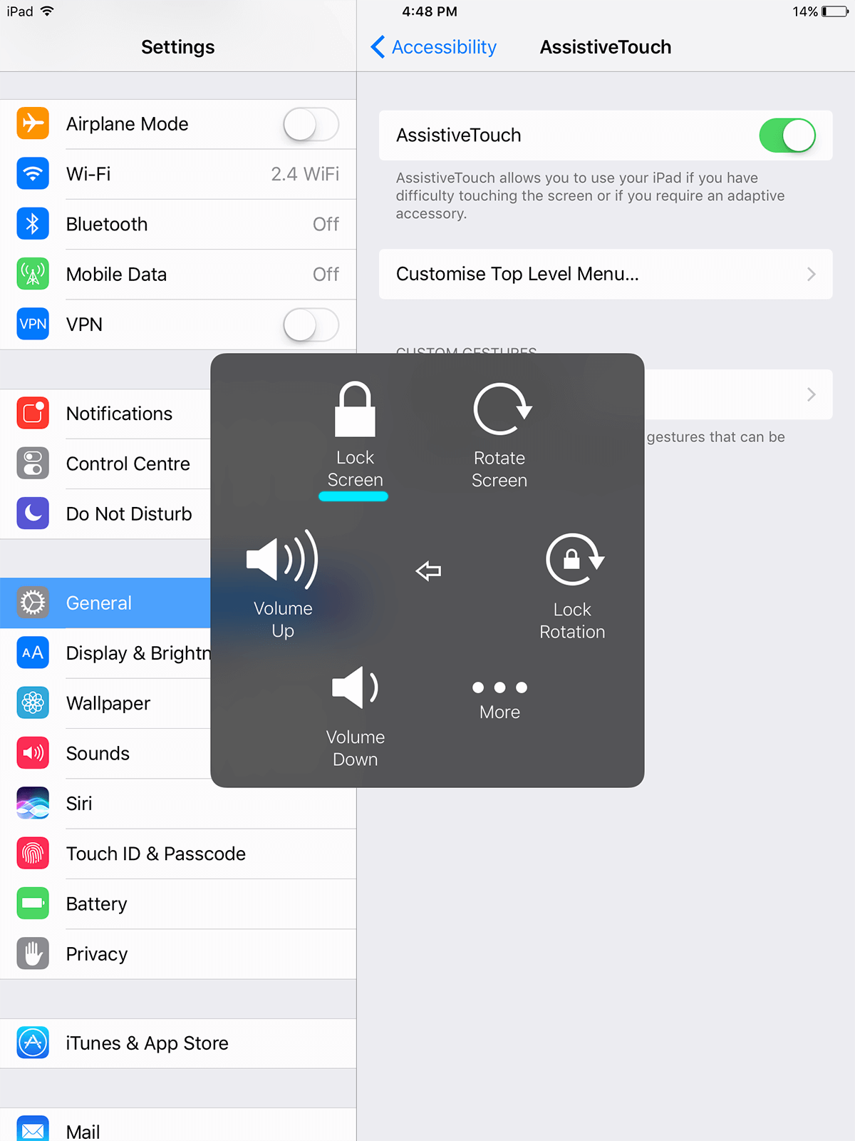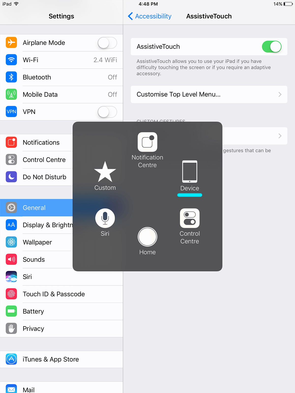 Once you have configured the above. Tap on the hovering Assistive Touch icon to bring up the menu.