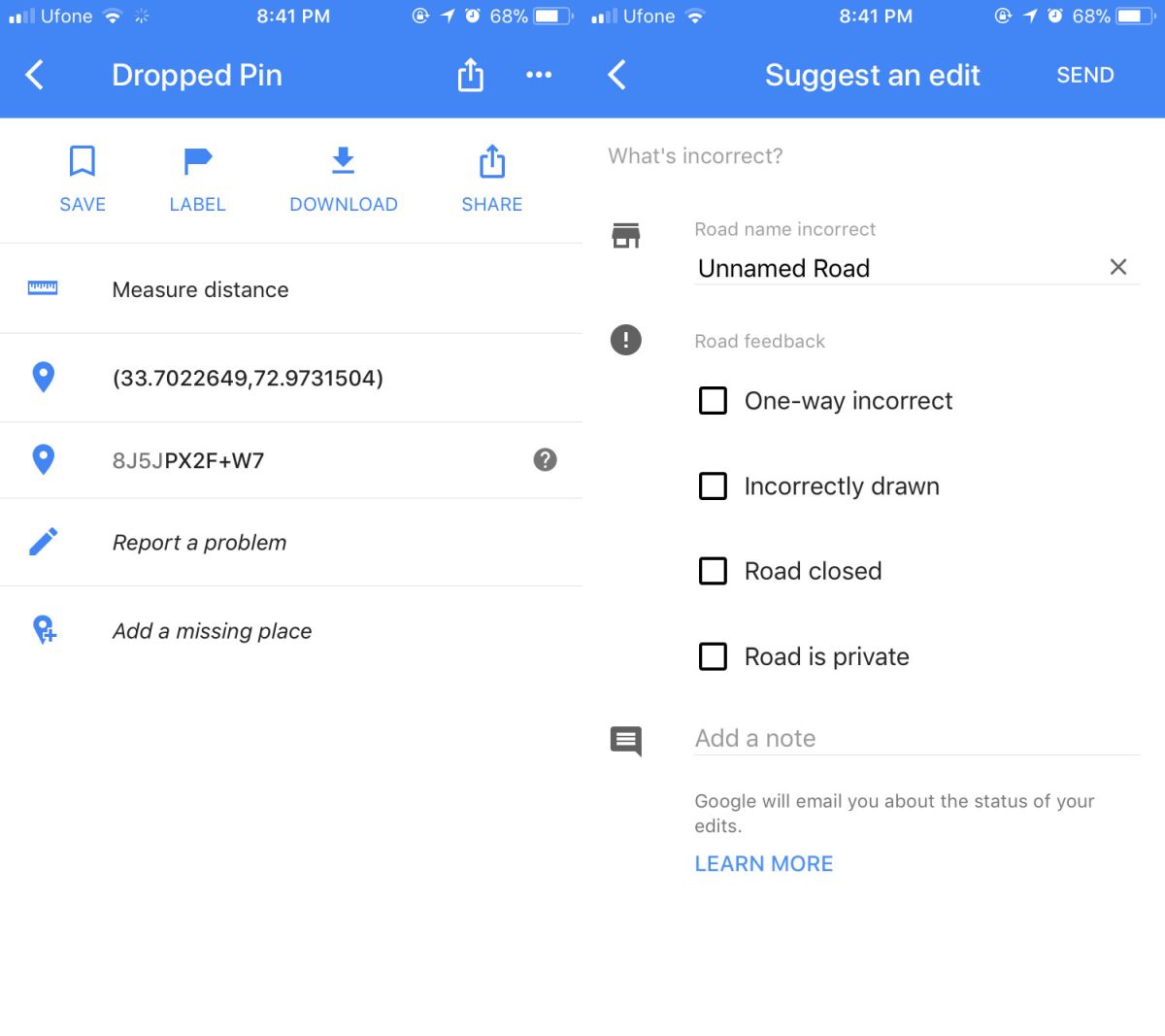 Once again google maps fails to come up with something which could really help travellers. I think they should shut down this Report road feature.