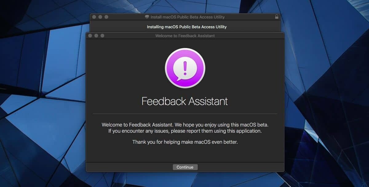 Look for it in the Downloads folder, and install it. The package will advise you to back up your Mac if it doesn’t detect a Time Machine back up. It will also tell you that a Feedback Assistant app will be installed on your Mac. There is no way to opt out of installing this app.