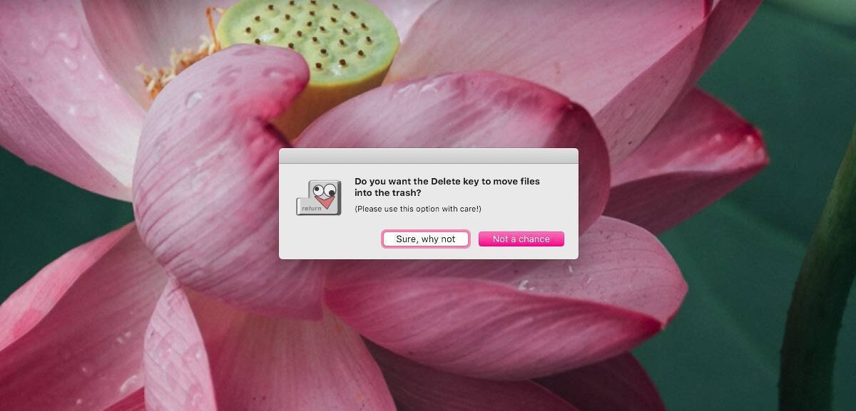 Next, it will ask you if you want to use the Delete key to move files to the Trash. This is another feature of the app and another difference between how Windows 10 and macOS works. The delete key doesn’t send selected files/folders to the Trash. Instead, you have to use the Command+Delete keyboard shortcut. If you’d like to just tap the Delete key and send a file or folder to the Trash, you can set PresButan to do that.