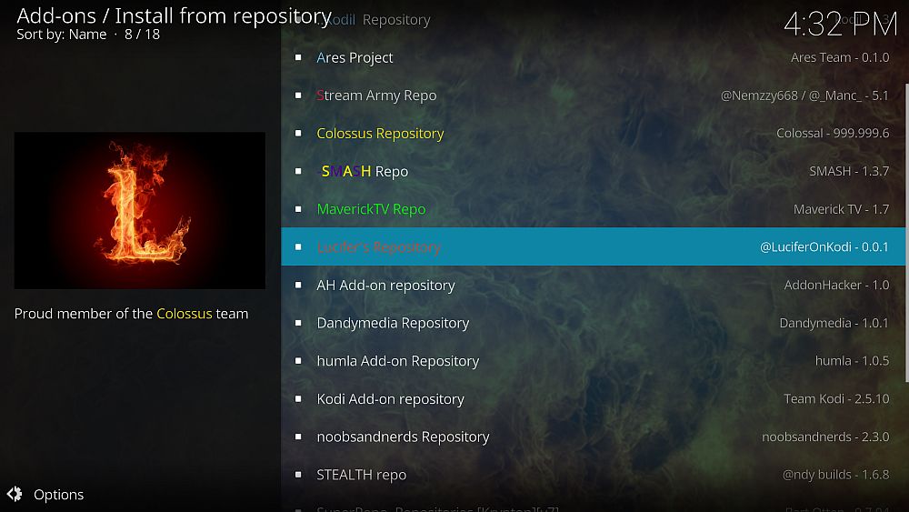 - Go back to the Addon Browser menu and select Install from repository. Select Lucifer’s Repository and then Video Add-ons.