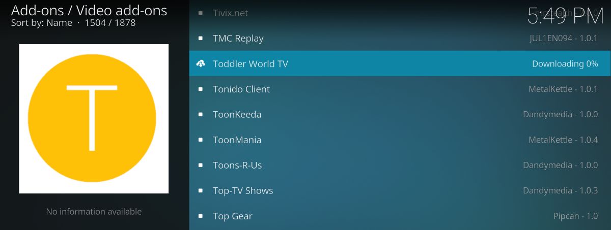 While power users may baulk at the name, Toddler World TV delivers an impressive array of content aimed at preschool-aged children. Like Toonmania, this is another add-on from the MetalKettle repository that is well designed, reliable and easy to navigate.