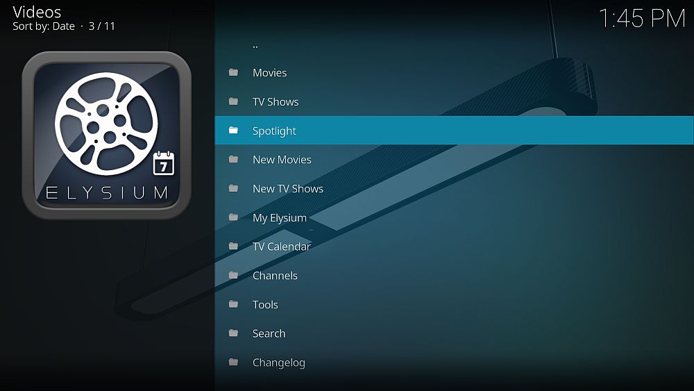 - Now you’ll see options for Movies, TV Shows, Spotlight, New Movies, New TV Shows, My Elysium, TV Calendar, Channels, Tools, Search, and Changelog