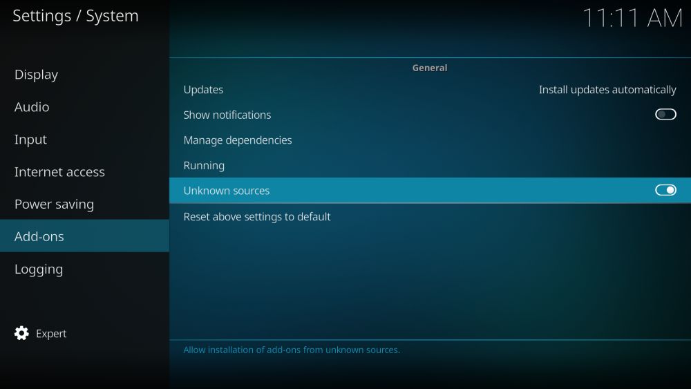 Kodi add-ons are usually packaged in repositories, which are zip files hosted on external websites that contain dozens or even hundreds of add-ons. This makes it easy to discover new content and keep your current add-ons up to date. Kodi also offers a number of different ways to install add-ons, though we prefer the “external sources” method as it’s easier to use on mobile devices. Before you jump in, you’ll need to change one of Kodi’s default settings to allow this method to work: