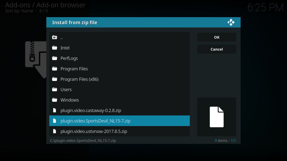 How to install SportsDevil on Kodi from Zip file