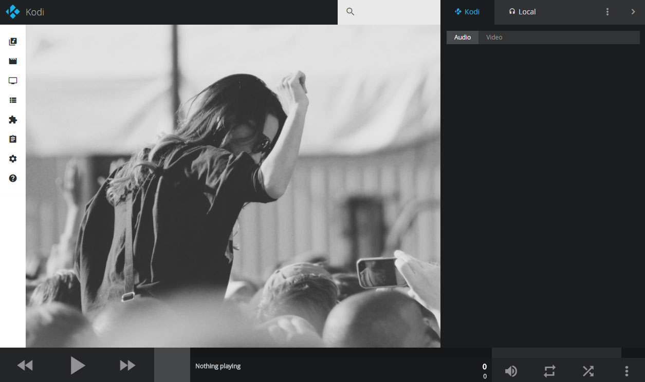 Once you’ve opened up the web interface, you can start using it to control your Kodi. First of all, you should look at the grey bar at the bottom of the screen. This is where information about currently playing media is displayed. You can use the back, forward, and play/pause buttons on the left to control what is currently playing. On the right, you’ll find control for volume, repeat, and shuffle. In the middle you’ll see a thumbnail and description of the currently playing media.