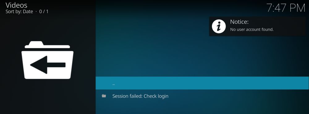 - Enter your account details here (right click on Session failed and click on Add-on Settings).