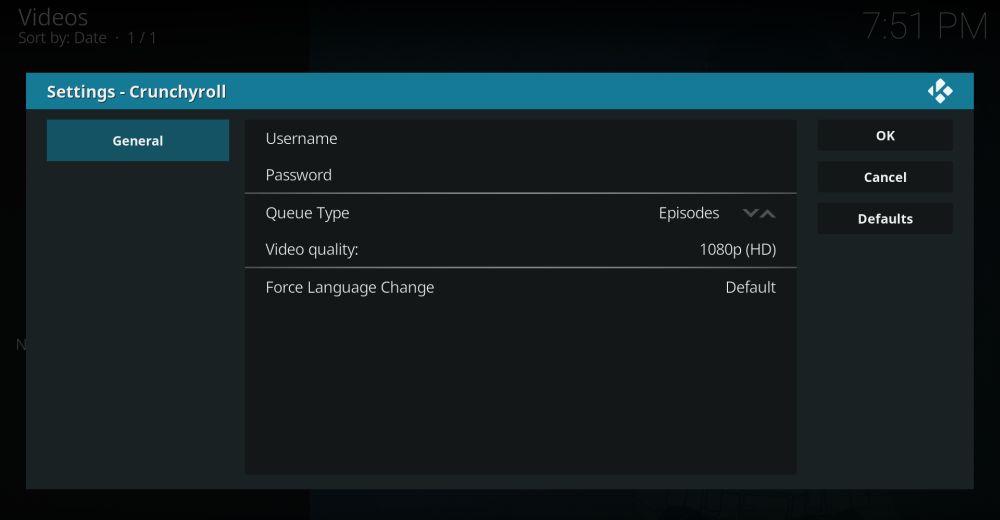 - If you miss this prompt, don’t worry. You can go back and add your login information later. To do this, go to your list of video add-ons and right click on Crunchyroll. Click on Add-on information, then on configure in the left hand menu. In the settings screen which pops up, you can add the username and password that you just signed up with, then press OK