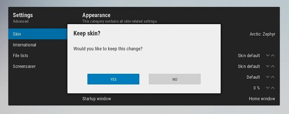 - Now your Kodi will have the Arctic Zephyr skin and you can enjoy your new look