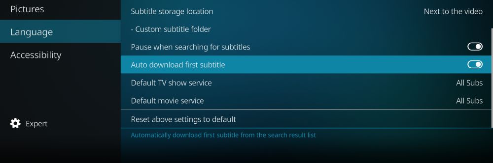 - Enable the “Auto download first subtitle” option — if you don’t have this option click the lower left button, the gear icon that says Standard and update the settings for ADVANCED or EXPERT users.