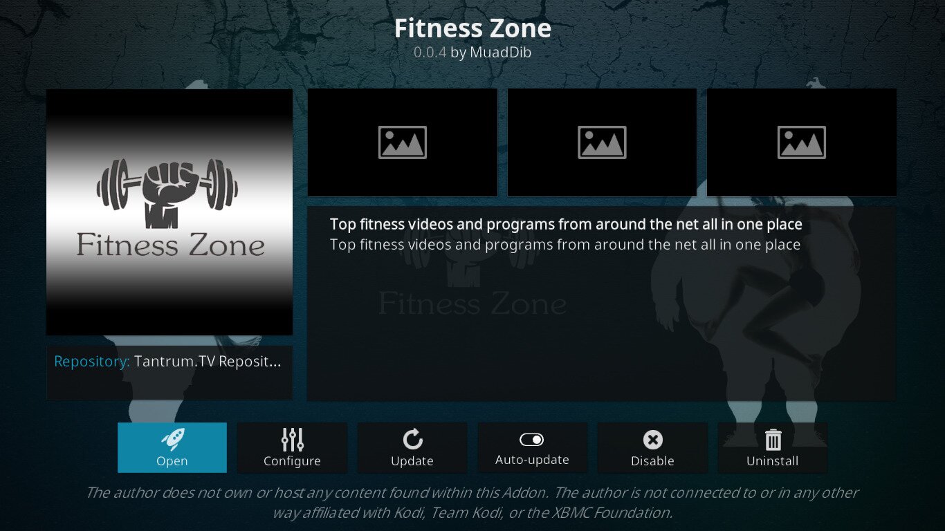 The Fitness Zone add-on is another new fitness and workout add-on. The current version is 0.0.4. The add-on if from developer MuadDib.
