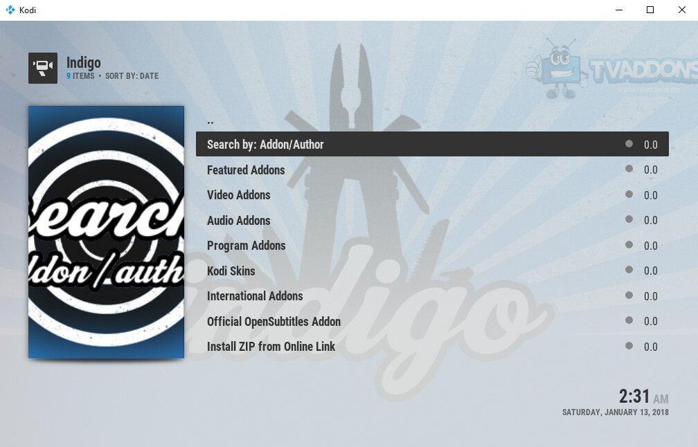 The addon installer is the main appeal of Indigo for most users. It is designed to streamline the process of installing add-ons by helping you find the right repository or file source for the add-on and updating it to make sure that you are using the latest version of the add-on. If you don’t want to go digging through a bunch of repositories when you want to install a new add-on, then you should use the add-on installer. With the addon installer menu you’ll find options to either browse add-ons (organised into categories like video add-ons, audio add-ons, or program add-ons) or to search for a particular add-on that you’re looking for.