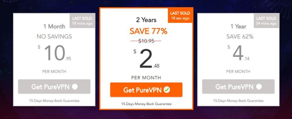 Follow the links above to visit our exclusive PureVPN deals page where you can get the best deals on a PureVPN subscription. First you’ll need to pick a plan. The two year deal option saves more money, but you can also go with the one month or one year plan, if you like. Either way, PureVPN offers a 15 day money back guarantee, so you can try it out with complete confidence.