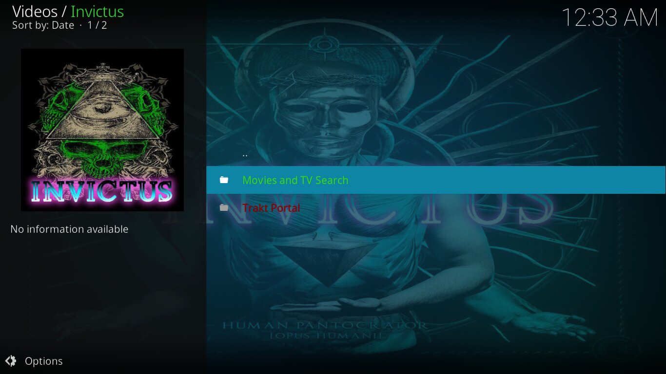 Although the Invictus add-on’s specialty is live IPTV feeds, hidden on the second page of its Entertainment and Sports menu is a pretty complete on-demand video section that has movies and TV shows. They can be accessed using a search engine or via some Trakt playlists.
