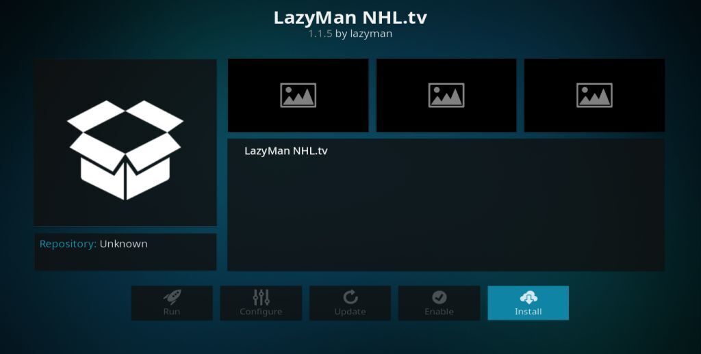 - Select Install from Repository > LazyMan Repository > Video Add-ons > LazyMan NHL.tv > Install
