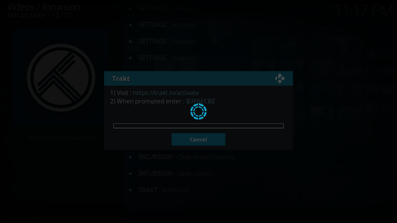 For Trakt, you need to go to the Tools section and then click SETTINGS: Accounts. Then you scroll down to the Trakt section and click Authorize. A window will pop up inviting you to visit https://trakt.tv/activate and, when prompted, enter the activation code that’s given to you.