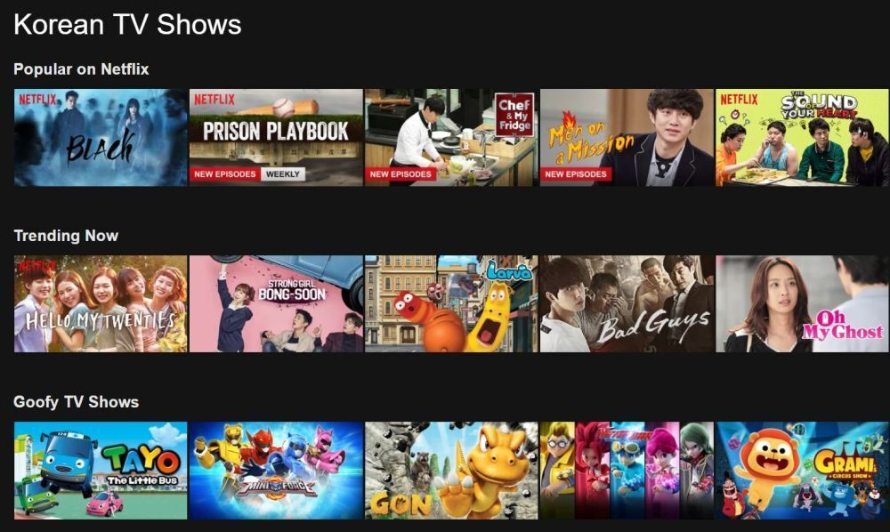 For example, Korean TV Shows are code 67879. To see Korean TV Shows on Netflix, you just have to head to https://www.netflix.com/browse/genre/67879