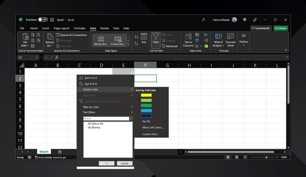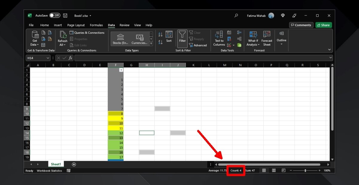 A colored cell in Excel doesn’t behave differently than cells with no fill color. That said, they do look different and if you’d like to count how many times a particular colored cell appears in a sheet, you’ll find there is no straight forward way to do it. You can use data filters to count colored cells in Excel.