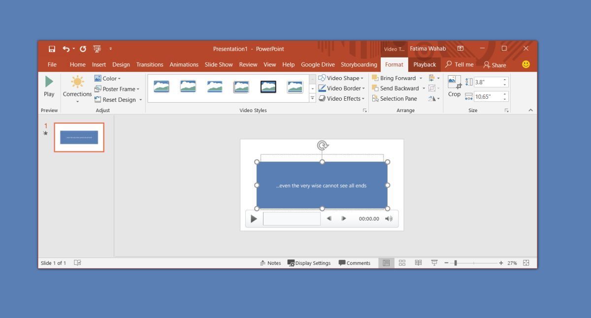 PowerPoint itself has a few very basic video editing tools that allow you to crop a video, add a few transition effects, insert captions, and of course trim the video. This is about as basic as it gets. For more editing options, you can try the Photos app which lets you merge videos together.