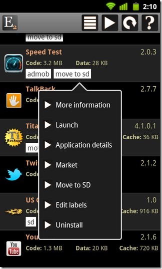 You can view app details and open each app’s Market page form within Elixir 2. Generate Report feature lets you generate reports of your device, installed applications and running services and share them via email, Bluetooth or SMS.