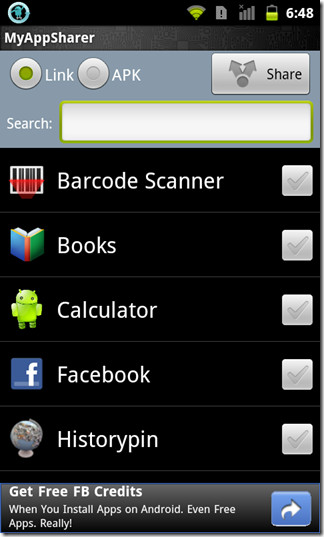 MyAppSharer has been successfully tested on HTC Desire Z, and we can verify that it works absolutely the same way as it says on the tin. The app works effectively in both modes (link sharing and direct APK sharing). There are quite a few app sharing variants available in the Android Market but this one is special as it comes with the much sought after support for APK sharing directly via Bluetooth. If anything, we’d love to see the app’s interface receive an overhaul.