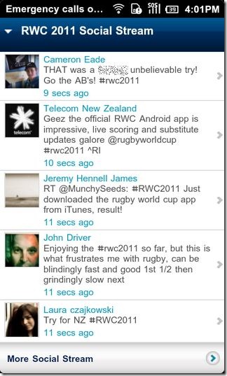 While I might not be a regular Rugby follower, when the World Cup’s around, I can’t afford to miss out on the action. It’s that time again when the best Rugby teams across the globe gather to lock horns in a attempt to claim their stake at the most coveted Rugby award of them all: The Rugby World Cup. The official Rugby World Cup 2011 just kicked off today with the hosts (New Zealand) scoring a win over Tonga. If you’re looking to keep up with Rugby World Cup news & scores, then you must try out the official FOX Sports Rugby World Cup app that (as of now) has been offered to Android users only. Released by one of the world’s leading sports news services, FOX Sports, the app could prove to be your premiere source of all the latest news, scores, fixtures, commentary, World Cup fantasy and detailed stats encompassing the entire event. Read on for details to go through the app’s complete feature list.