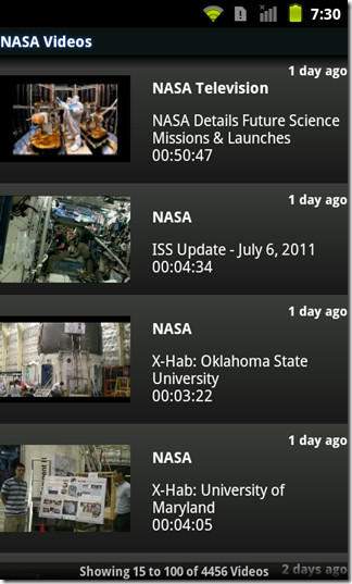 Being a data-heavy application, NASA official mobile client demands some hefty space on your SD card where all the downloaded graphics, videos and other multimedia content would be installed. The app is absolutely free to download and requires Android 2.1 or higher to run.