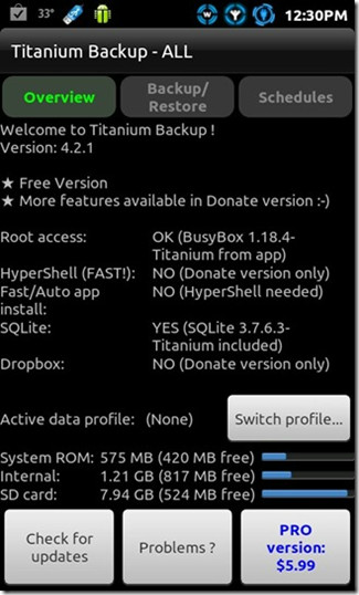 We cannot stress how useful and essential this app is. It will help you backup / restore your apps along with their data, coupled with the ability to freeze system and non system apps. For more on this app, see our complete guide on how to use Titanium Backup for Android.