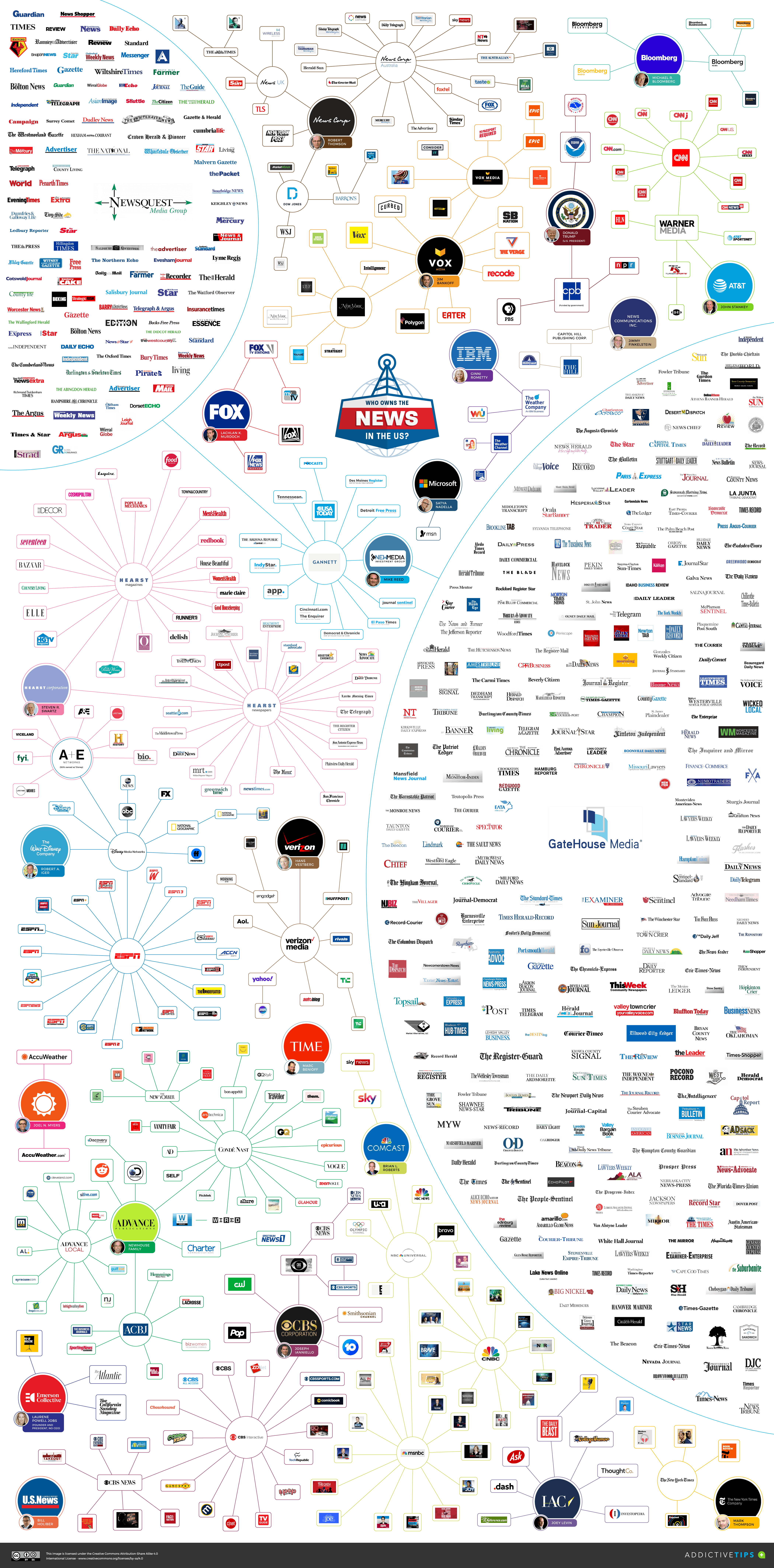 The news media has a powerful influence over consumer tastes, political opinions, and culture at large. As media moguls continue to build their empires, and emerging conglomerates begin to expand into the news media industry, it is important to remain aware of who exactly owns the news.