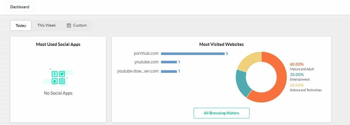 You can access a calendar of browsing history from this page. This calendar allows you to view in “Today”, “This Week”, and a “Custom Range” of browsing history.