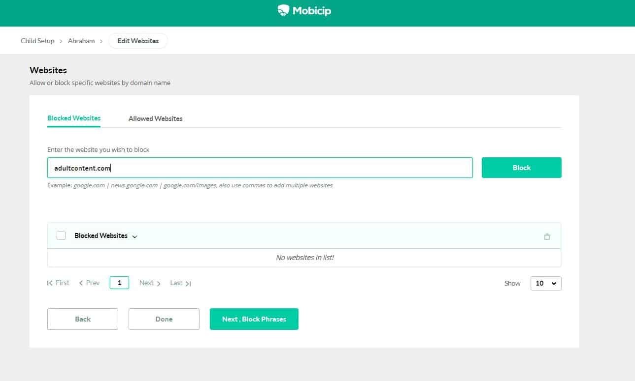 Yet, hackers can find a way around category blockers. This is the reason why Mobicip goes a step yet further by offering a feature to block specific websites.
