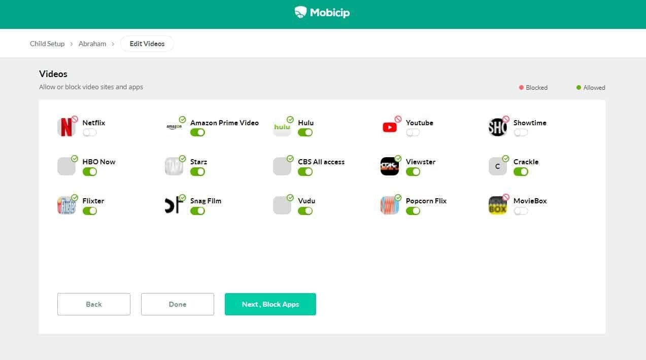 Mobicip takes its app blocking a step further for video streaming. Another feature allows you to block video channels directly.