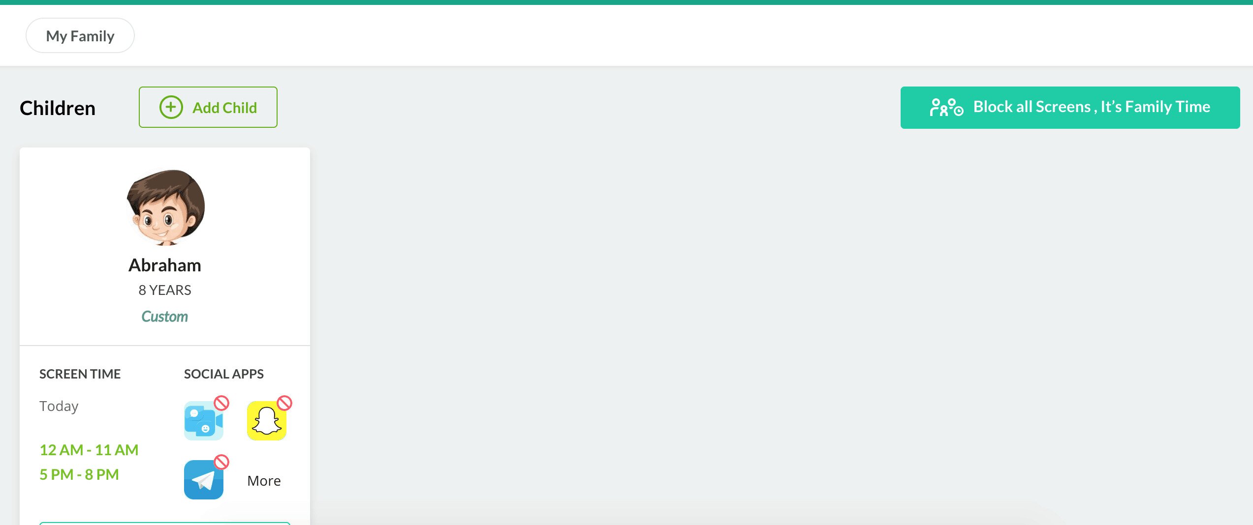 Under the family tab, it lets you set up a profile for your child that lists their age and their daily screen time allowance.