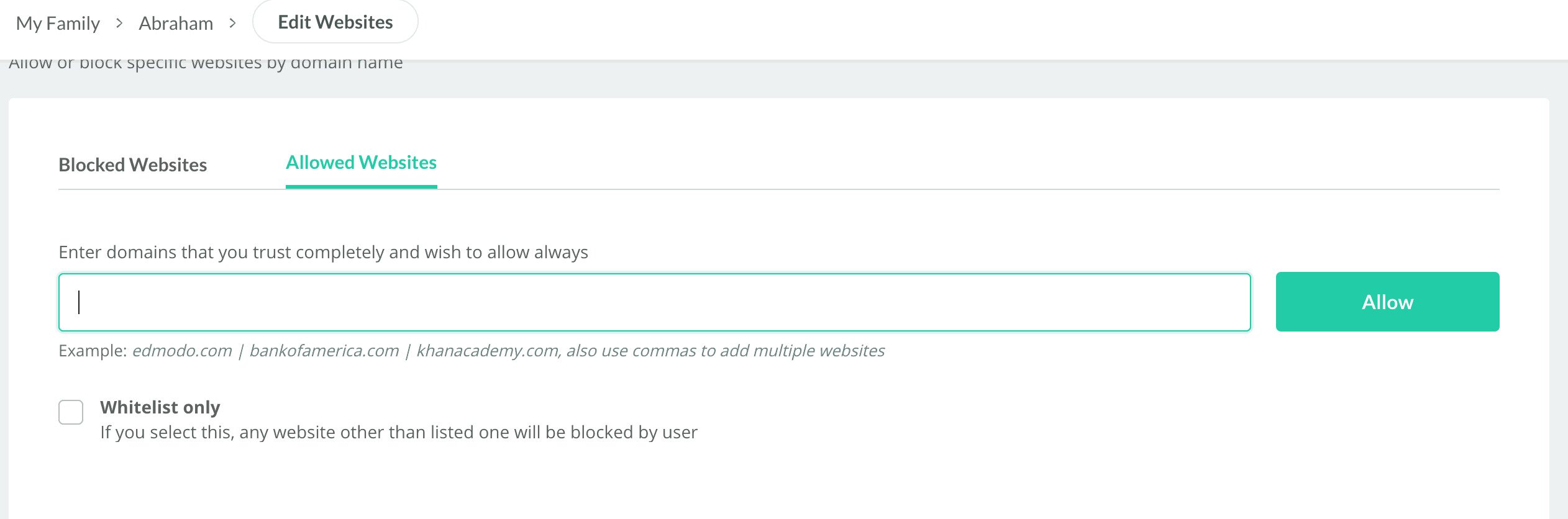This feature will also allow you to whitelist one website and block any others. This can severely limit a device. It’s recommended for the device that your child uses for school. Keeping their device focused on their virtual school room will improve their productivity while also preventing them from having run-ins with any inappropriate behavior online between teachers, other students, or a third party.